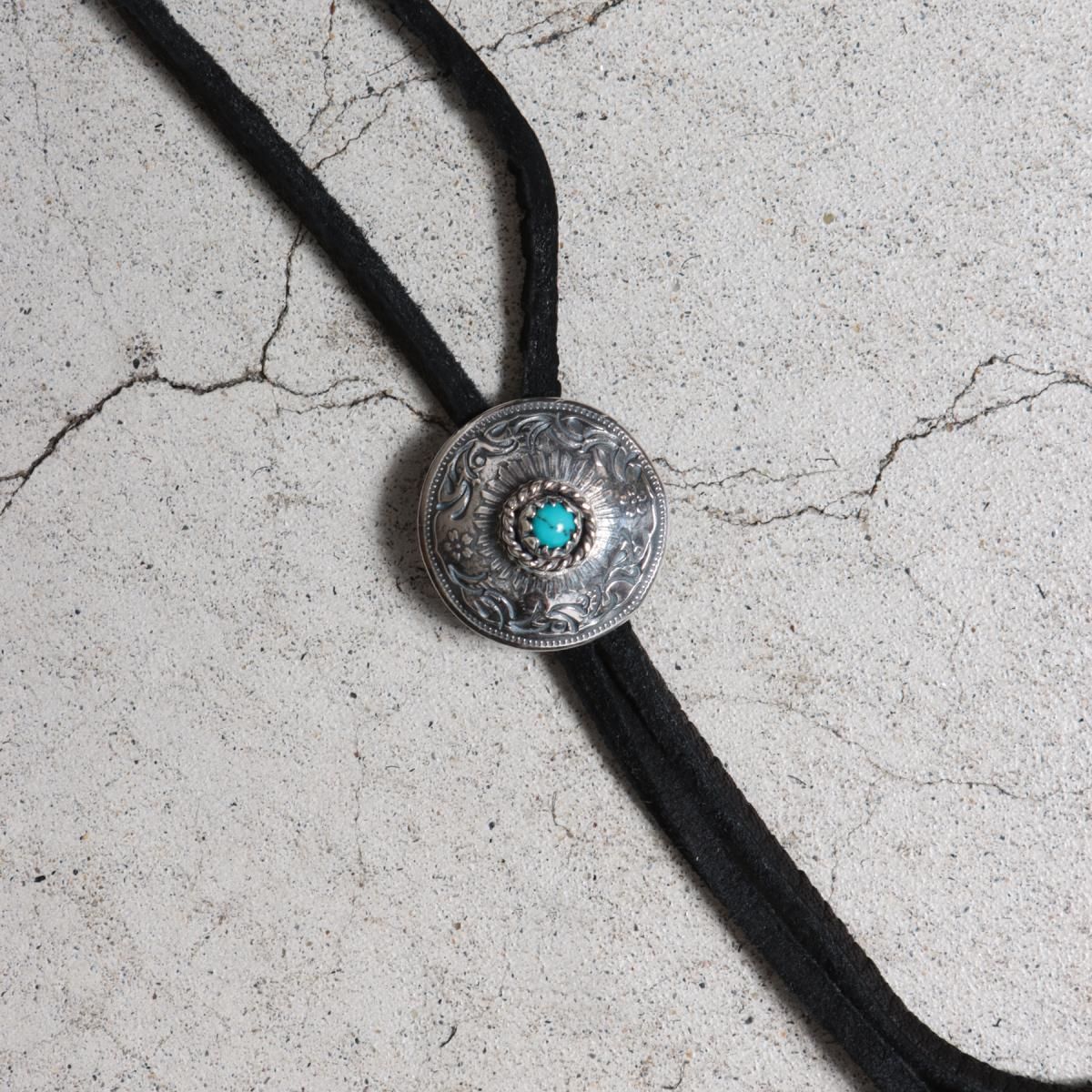 さらに、縁取りには1点ずつ丁寧に仕立てた“こより状の銀線(縄目模様)”をあしらい、中央の石を際立たせています。この技法は、ネイティブアメリカンジュエリーに見られるコインジュエリーの伝統的手法をベースにしつつ、日本の古銭を用いて再構築した、まさに"純和風ネイティブアメリカンジュエリー"と呼べるデザインです。
