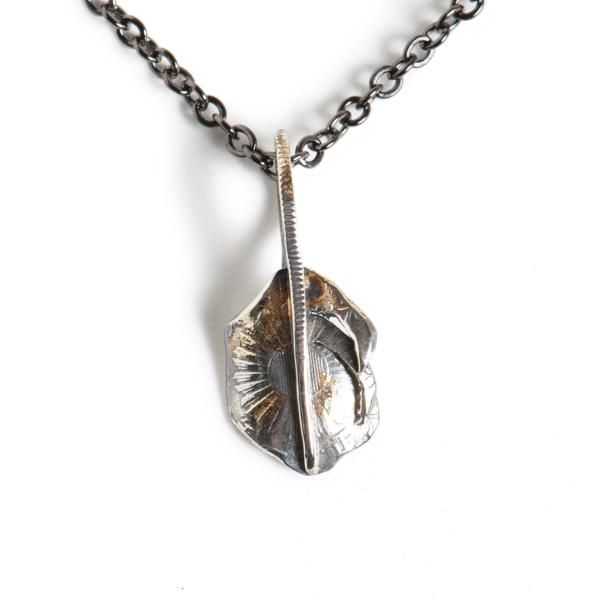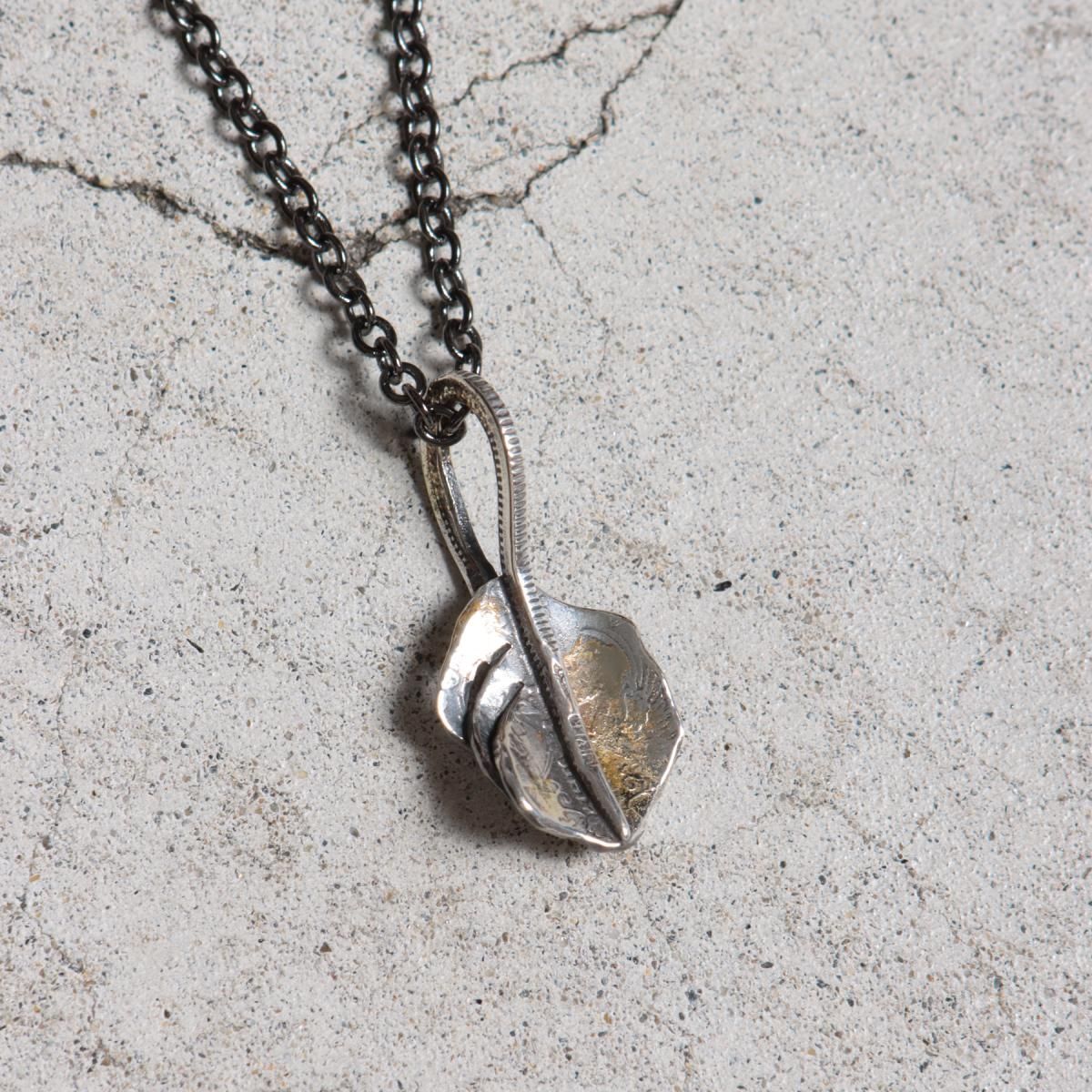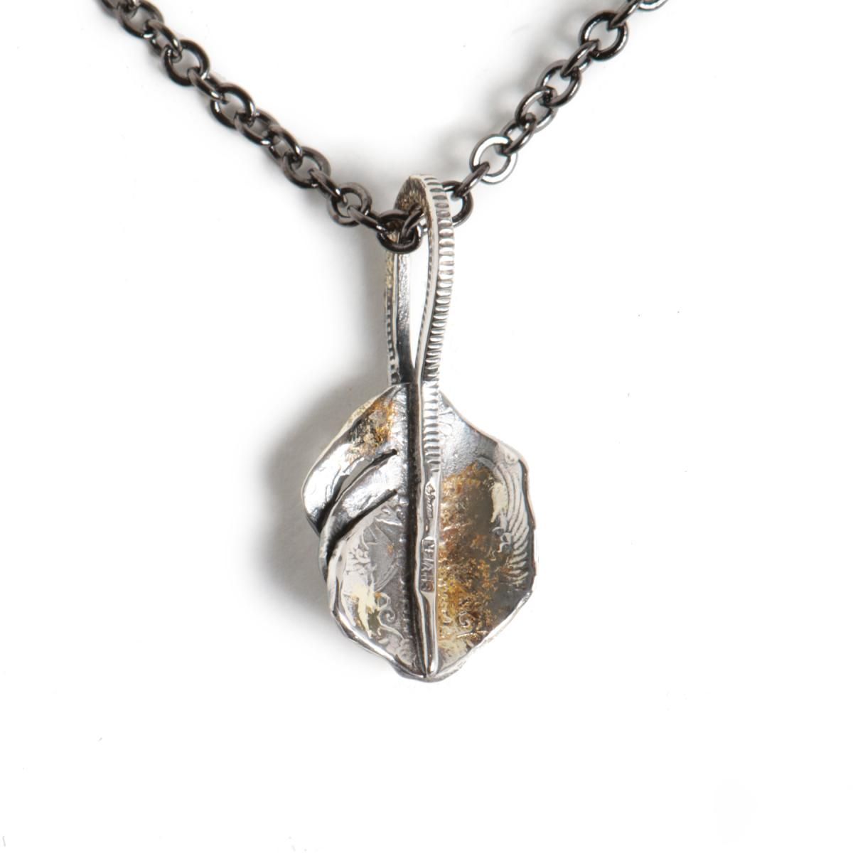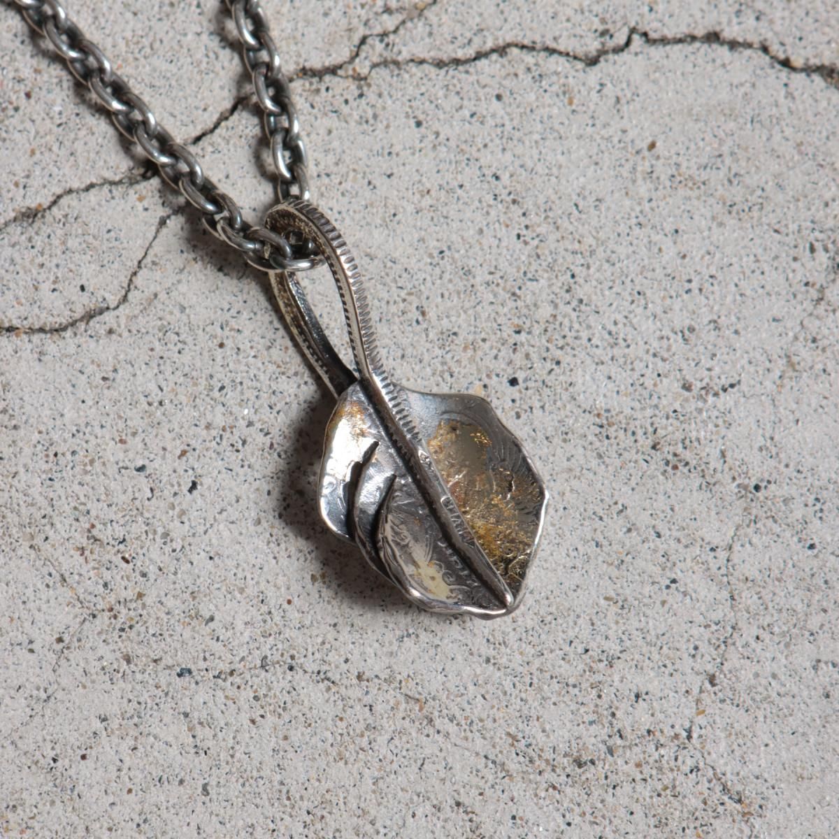 鳳凰,旭日が描かれた「小型鳳凰五十銭」の古銭を型取りし、Ag925(スターリングシルバー)で鋳造したコインから制作した、フェザー型のペンダントヘッドです。