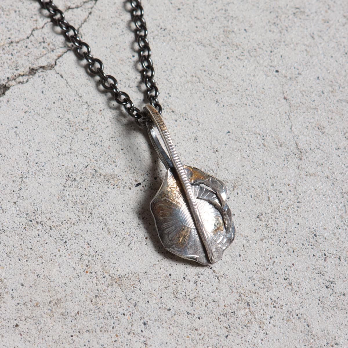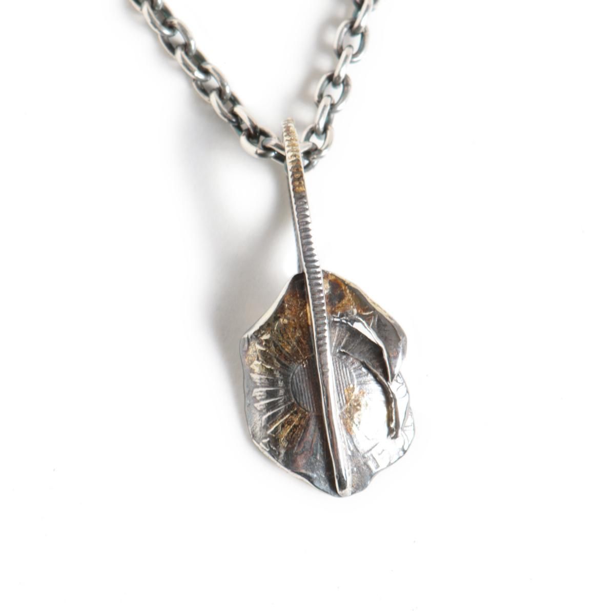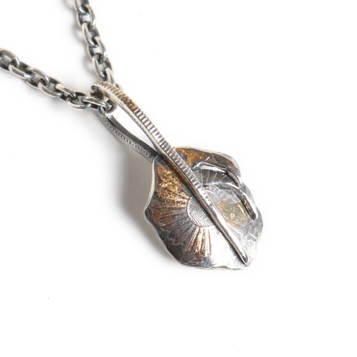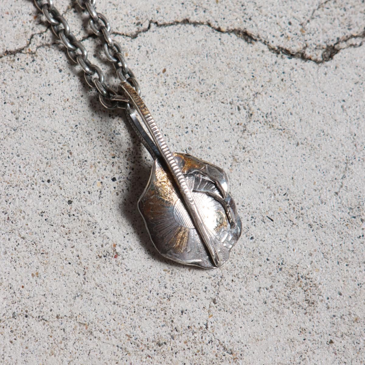 鳳凰,旭日が描かれた「小型鳳凰五十銭」の古銭を型取りし、Ag925(スターリングシルバー)で鋳造したコインから制作した、フェザー型のペンダントヘッドです。