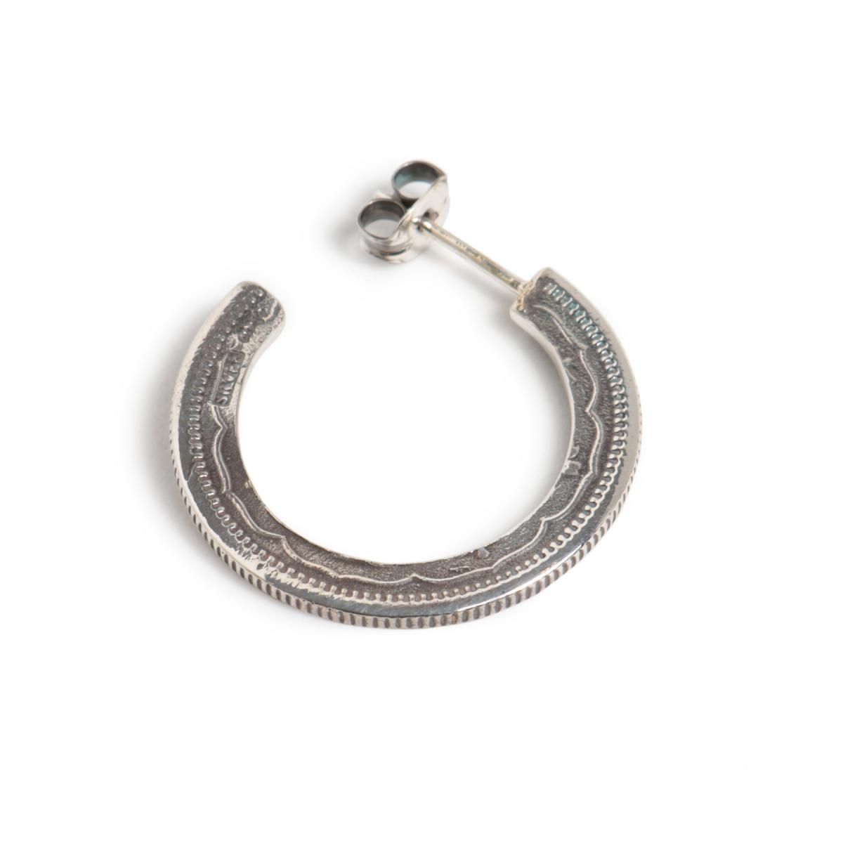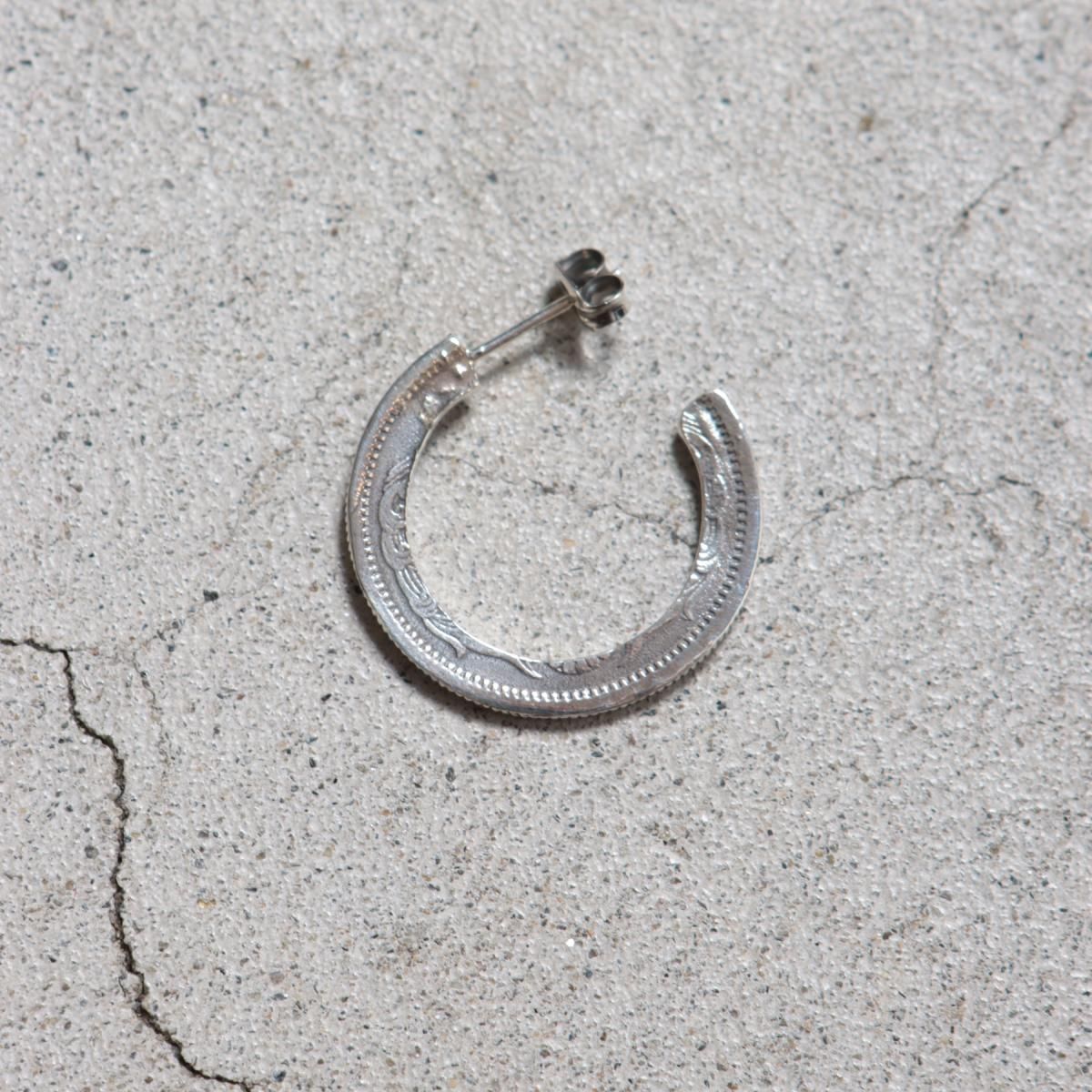 「小型鳳凰五十銭」の古銭を型取りし、Ag925(スターリングシルバー)で鋳造したコインから制作した、繊細な印象のオリジナルピアス(L)です。