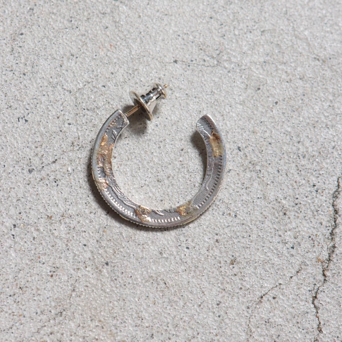 「小型鳳凰五十銭」の古銭を型取りし、Ag925(スターリングシルバー)で鋳造したコインから制作した、繊細な印象のオリジナルピアス(L)です。
