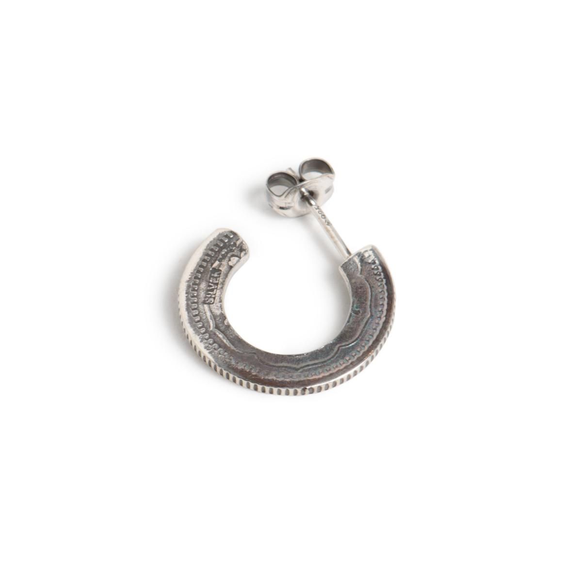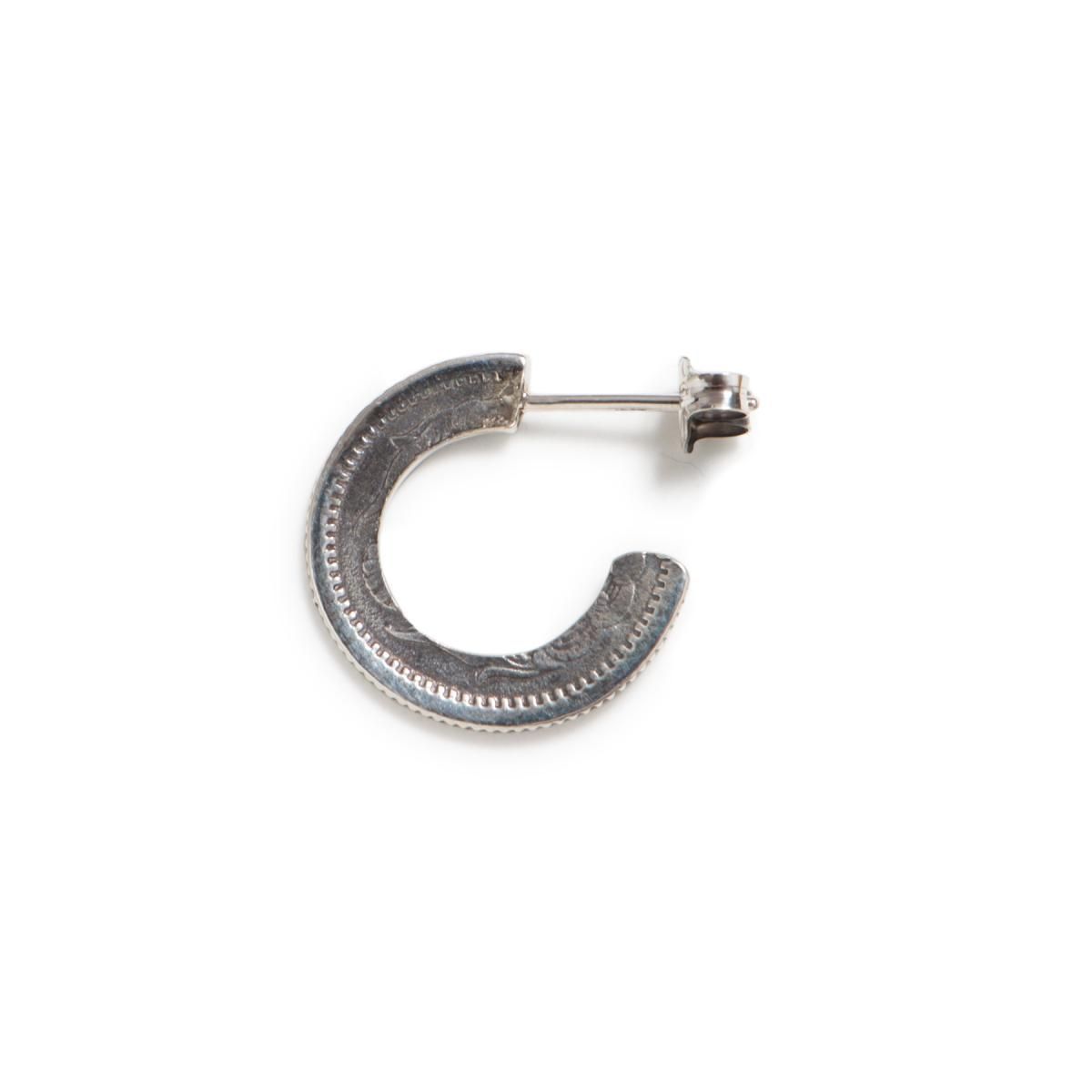 「小型鳳凰五十銭」の古銭を型取りし、Ag925(スターリングシルバー)で鋳造したコインから制作した、繊細な印象のオリジナルピアス(S)です。